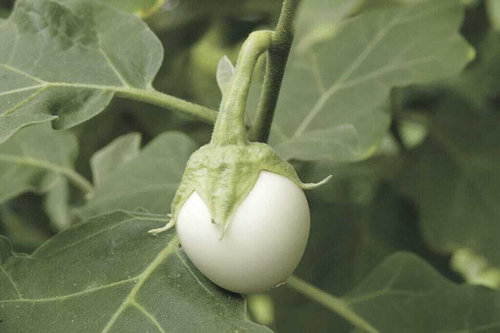 Samotný baklažán má oválne okrúhle (cca 10-15 cm dlhé), hladké, lesklé, biele až krémové plody pripomínajúce vajíčka. Má jemnú a sladkastú chuť. Plody sú najvhodnejšie na kuchynskú prípravu - grilovanie, vyprážanie a pečenie.