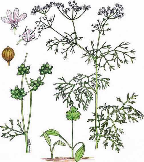 Koriander upravuje trávenie, uvoľňuje nadmerné plyny v črevách, pôsobí proti črevným parazitom, zlepšuje kvalitu spánku, stav kože a vlasov.